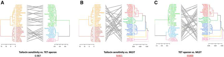 Summary The common polysaccharide antigen (CPA) of the lipopolysaccharide (LPS) from Pseudomonas syringae is highly variable, but the genetic basis for this is poorly understood. We have characterized the CPA locus from P. syringae pv. actinidiae (Psa). This locus has genes for l- and d-rhamnose biosynthesis and an operon coding for ABC transporter subunits, a bifunctional glycosyltransferase and an o-methyltransferase. This operon is predicted to have a role in the transport, elongation and termination of the CPA oligosaccharide and is referred to as the TET operon. Two alleles of the TET operon were present in different biovars (BV) of Psa and lineages of the closely related pathovar P. syringae pv. actinidifoliorum. This allelic variation was reflected in the electrophoretic properties of purified LPS from the different isolates. Gene knockout of the TET operon allele from BV1 and replacement with that from BV3, demonstrated the link between the genetic locus and the biochemical properties of the LPS molecules in Psa. Sequence analysis of the TET operon from a range of P. syringae and P. viridiflava isolates displayed a phylogenetic history incongruent with core gene phylogeny but correlates with previously reported tailocin sensitivity, suggesting a functional relationship between LPS structure and tailocin susceptibility.